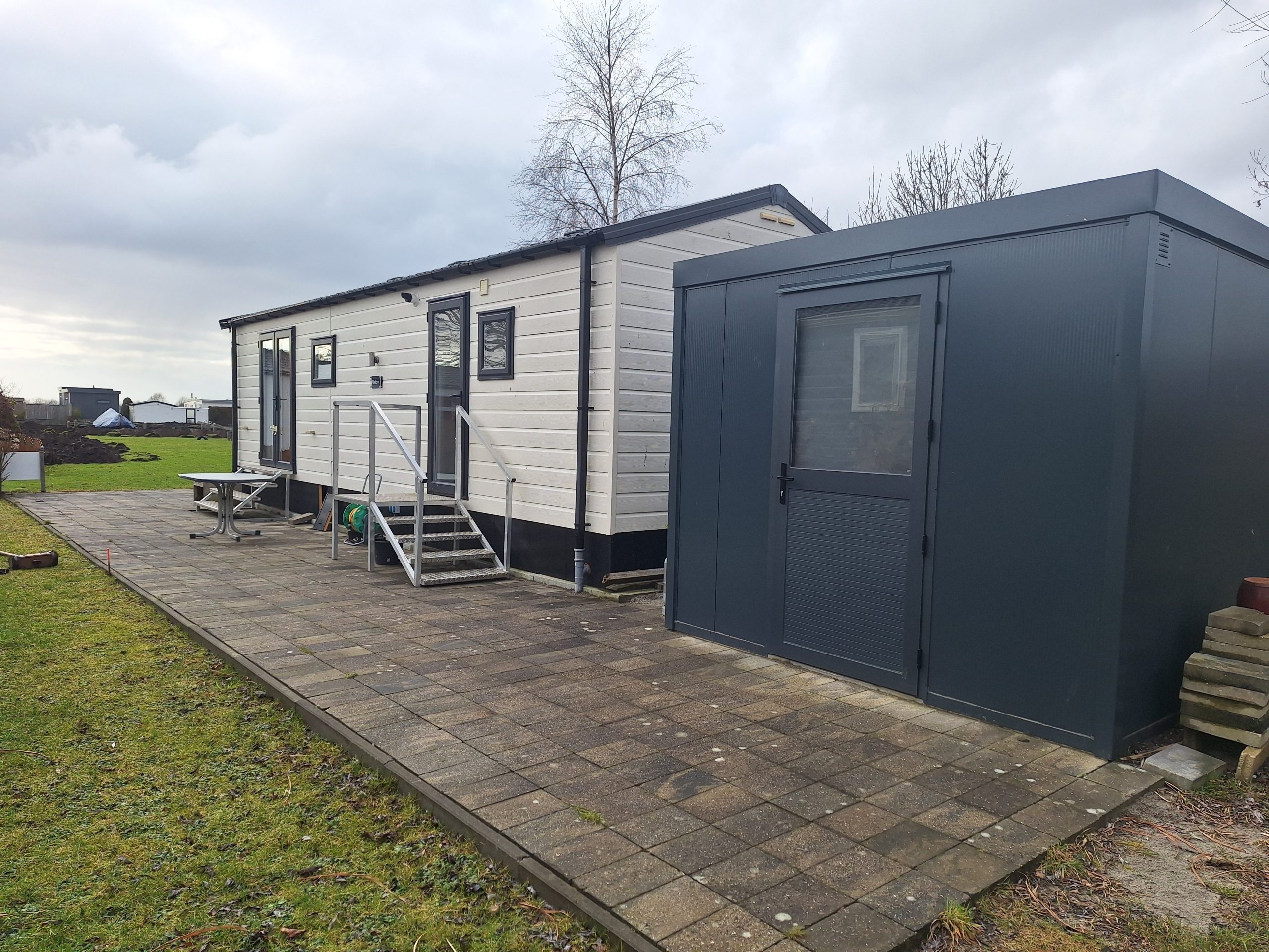 Kavel met chalet en schuur/berging op eigen grond (obv appartementsrecht), incl. gedeeltelijke inventaris/inrichting, alsmede een ligplaats,