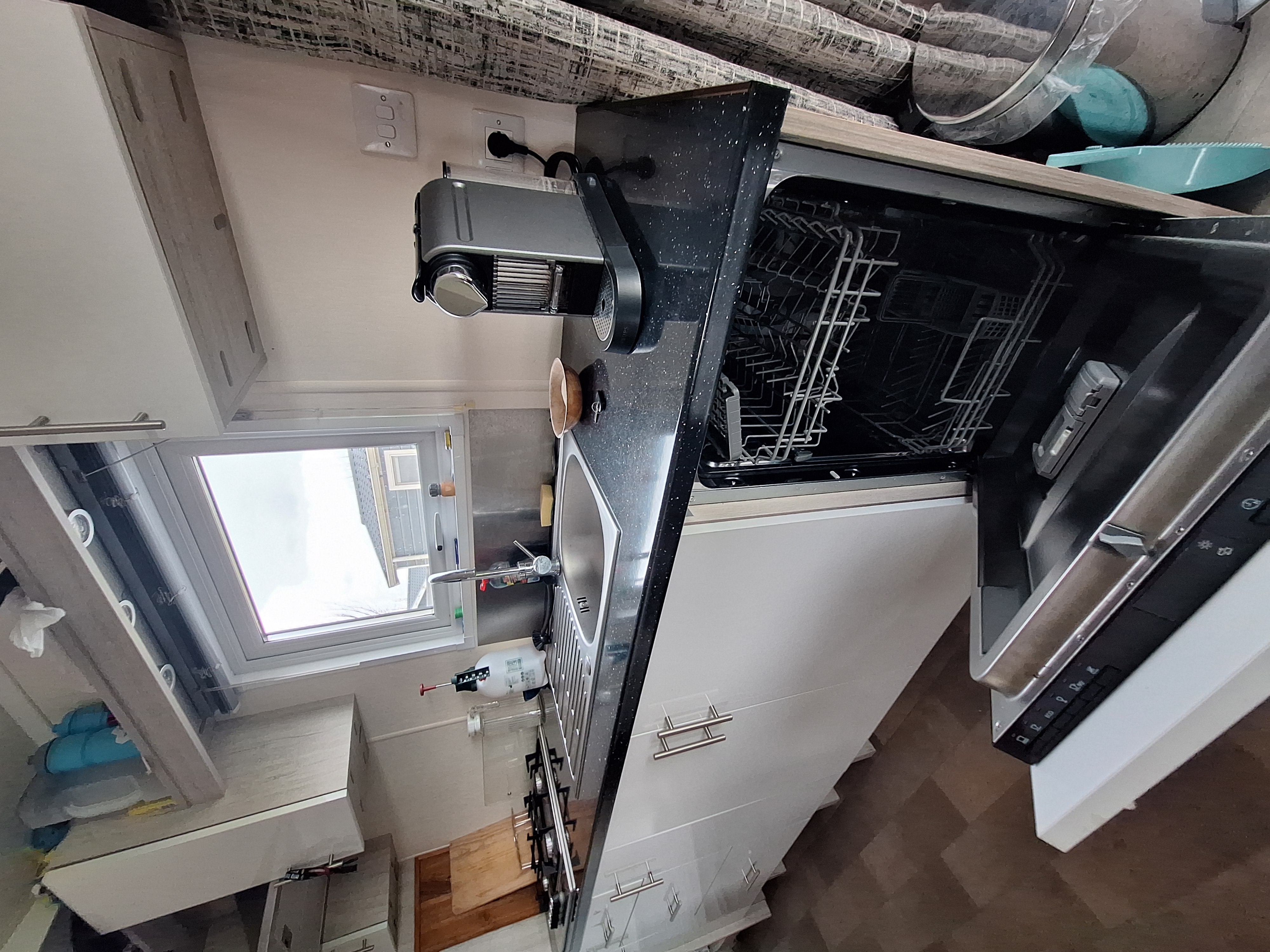 Zeer duurzaam. Gemaakt van 5 cm sandwichplaaten (wanden). Dak 6 cm.