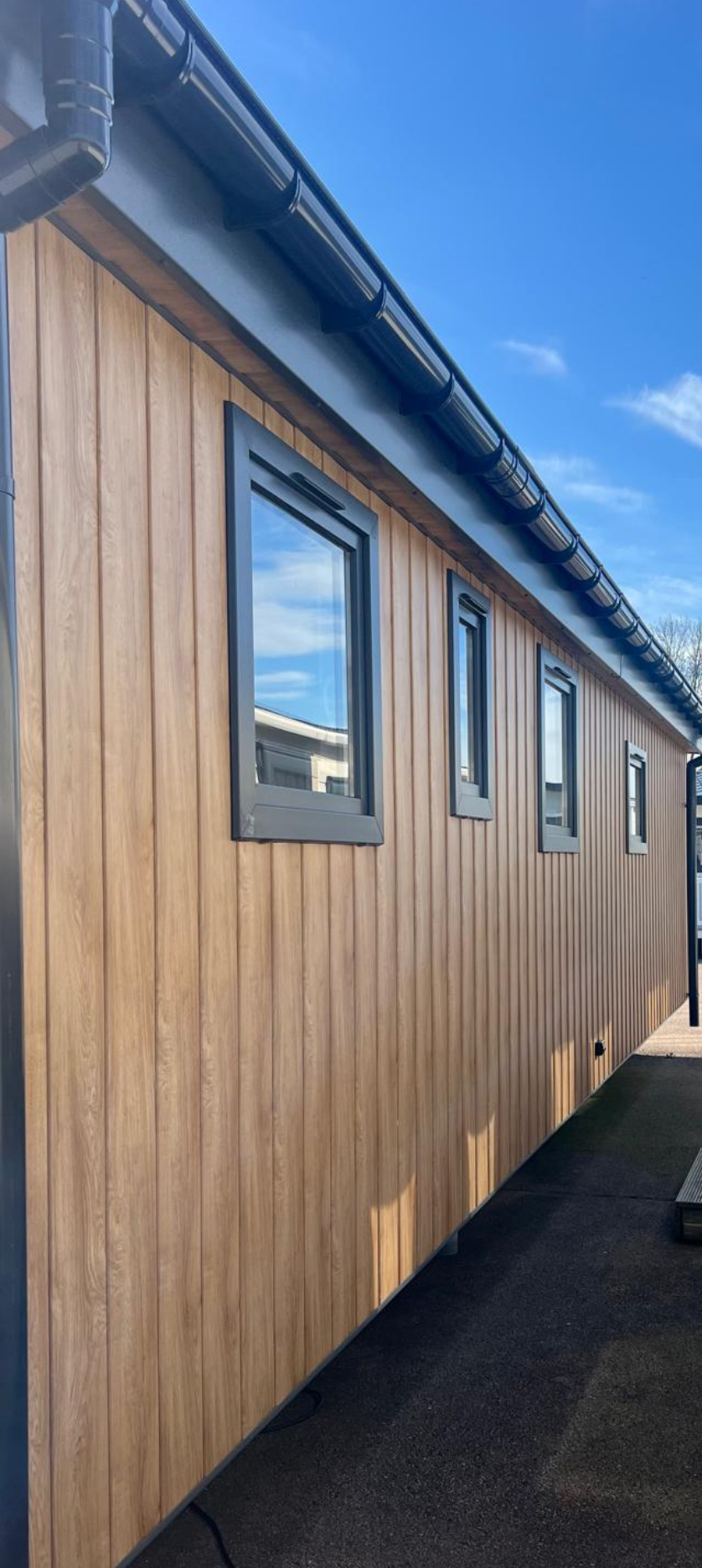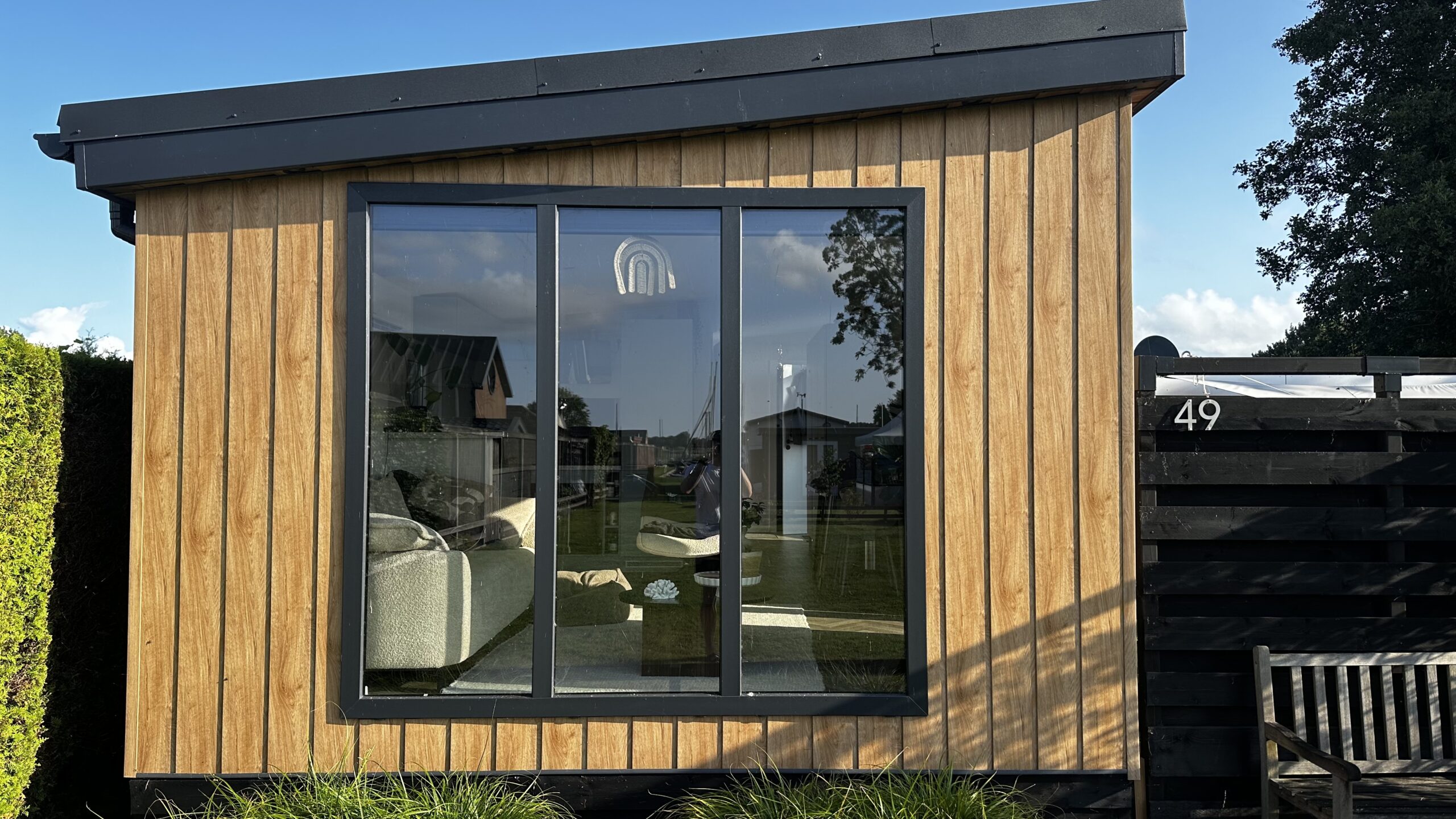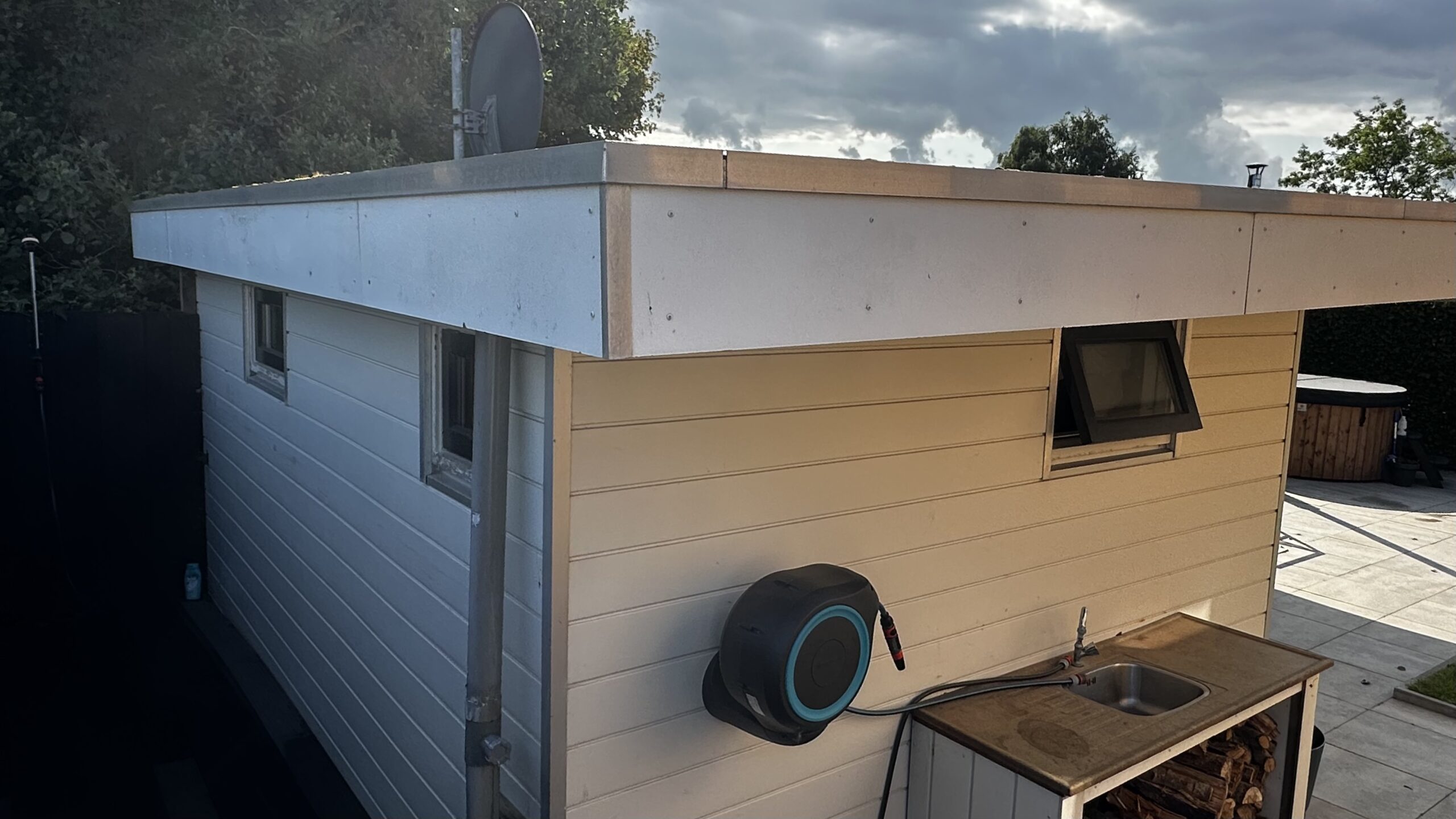 De zijwanden van het gastenverblijf zijn van kunstof en het dak is gedekt met bitumen.
